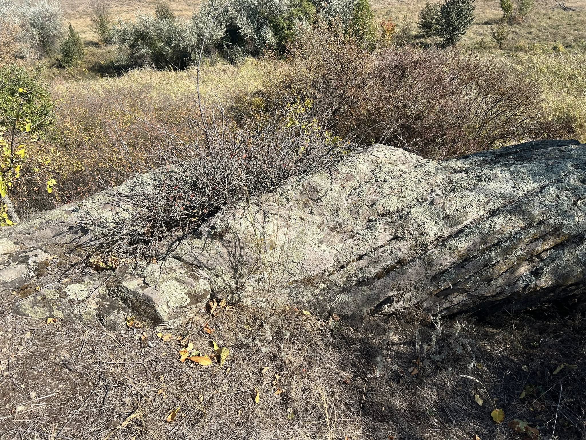 Струмок протікає між схилів з виступами гірських порід. Дуже нагадує острів Хортицю.