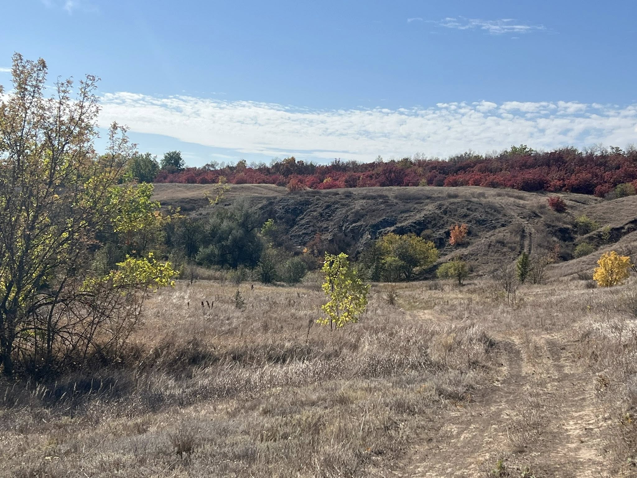 Моя улюблена місцевість - степ, невисокі пагорби та скелі, водоймище.
